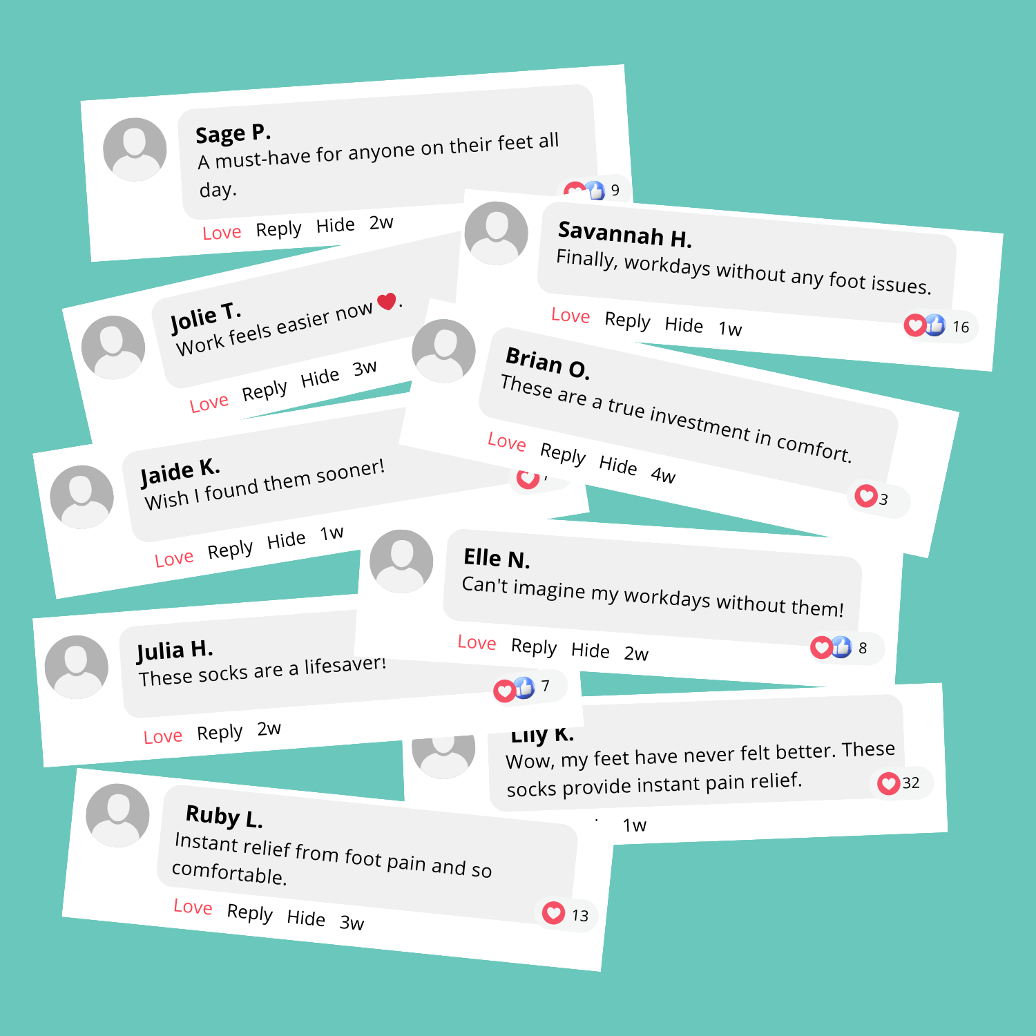 "I've been suffering from foot neuropathy since the birth of my second son. The doctor recommended Ibuprofen and icing, but I was limping around all year. These compression socks gave me instant relief the moment I put them on!"